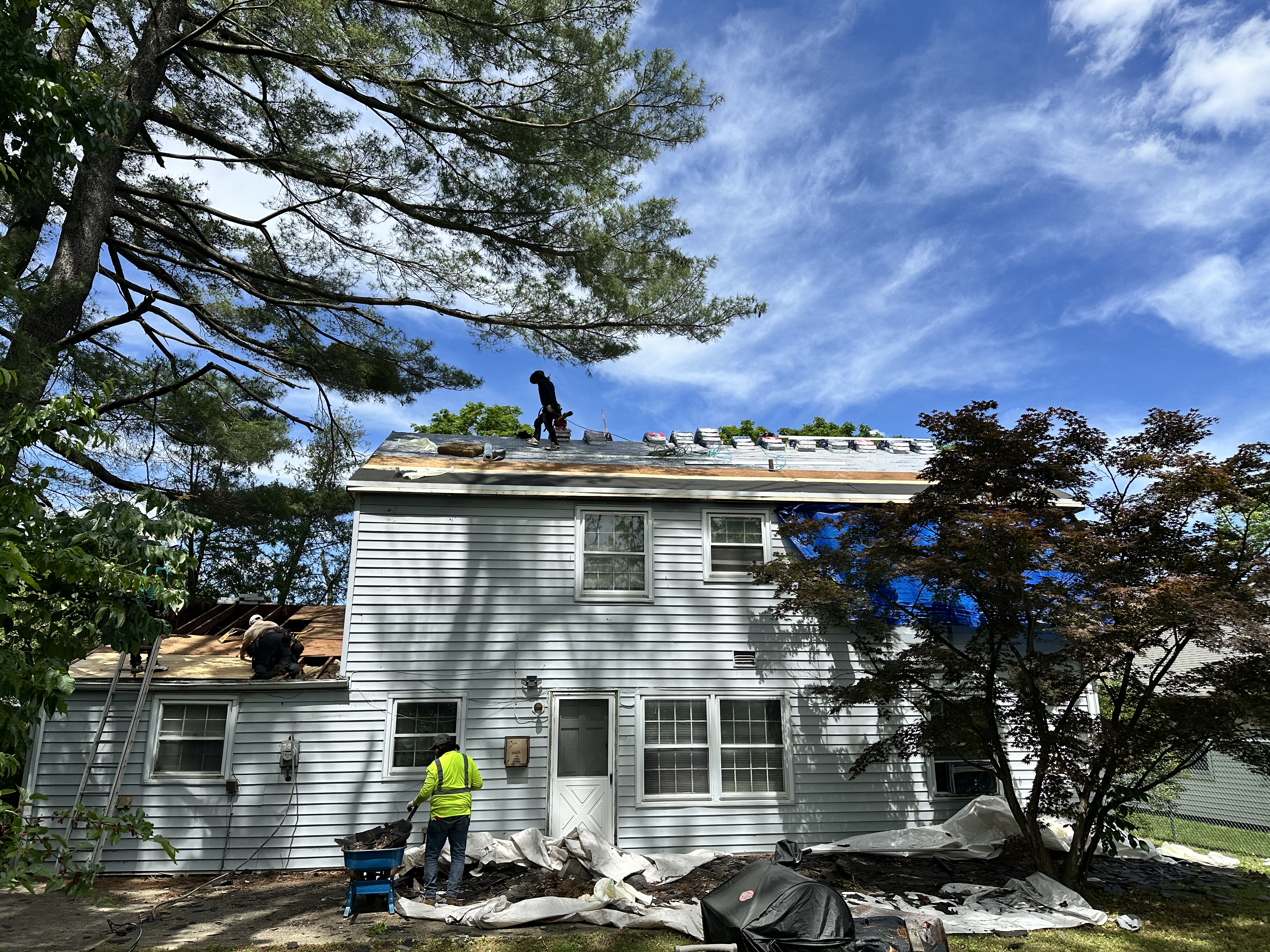 Storm Damage Repair, GAF Timberline HDZ Complete Roofing System in Charcoal, and 5” White Gutters