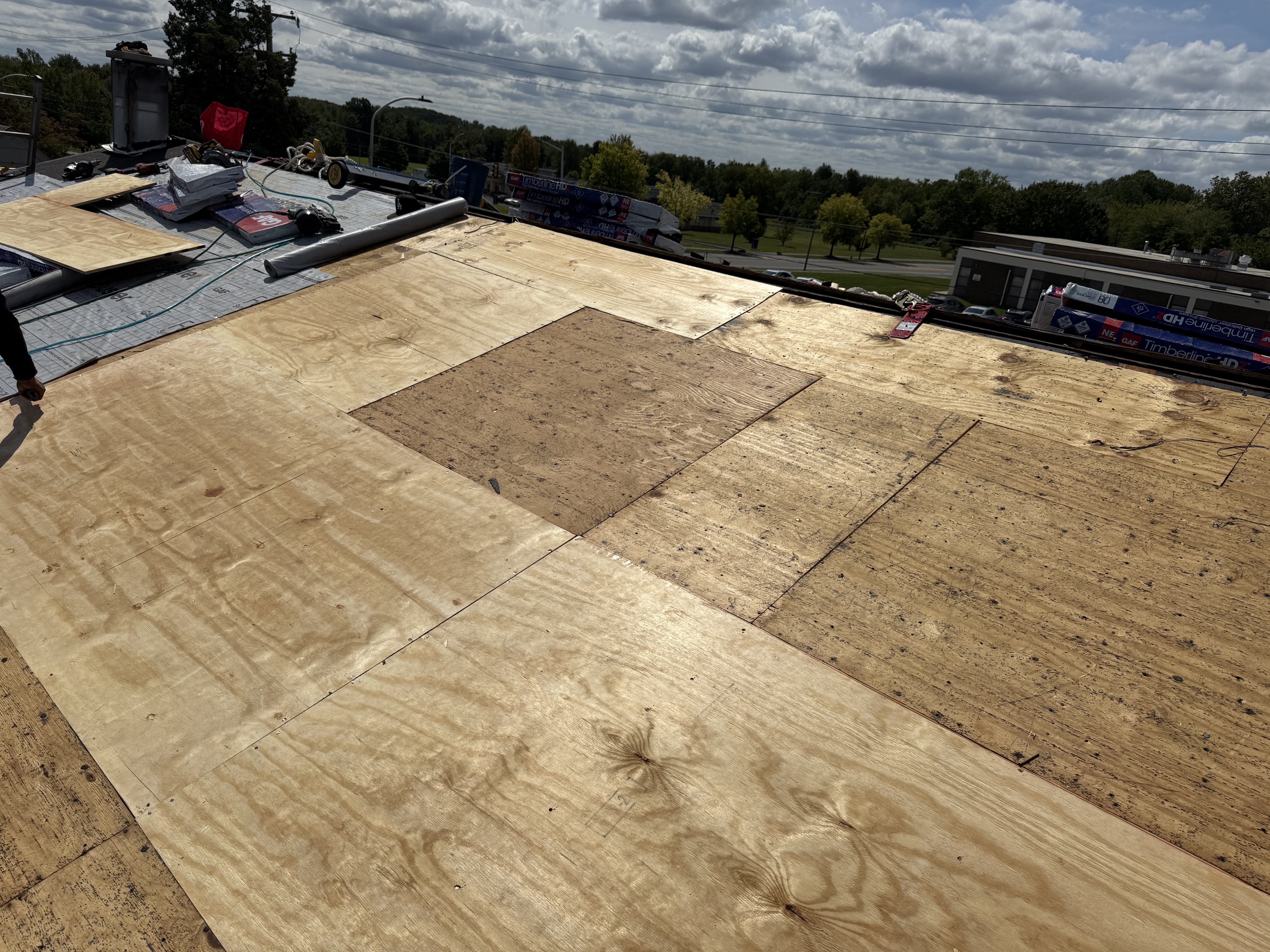 Partial GAF roofing in HDZ Shakewood.