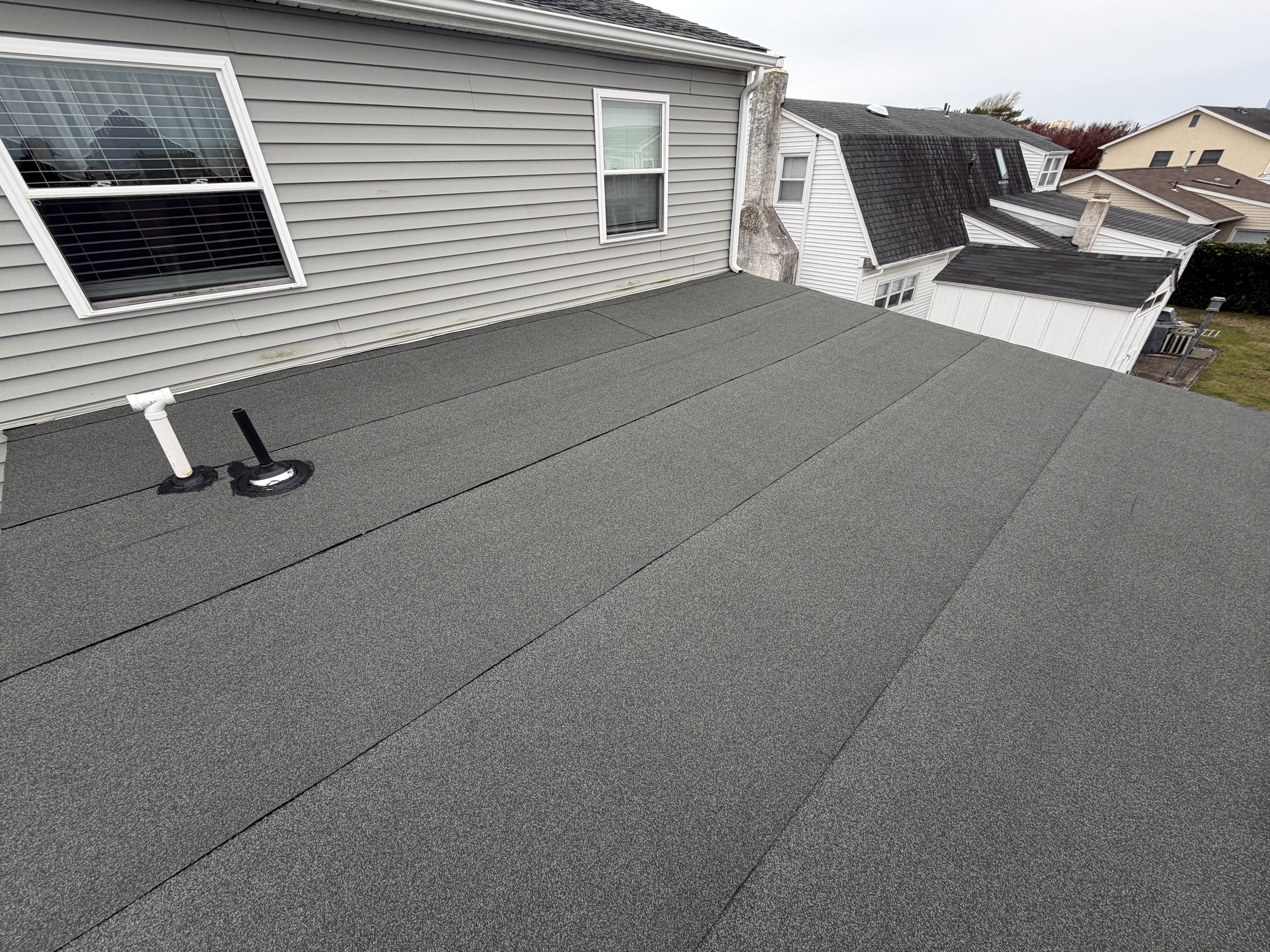 GAF 2 layer Liberty Flat Roofing System in Slate Grey.